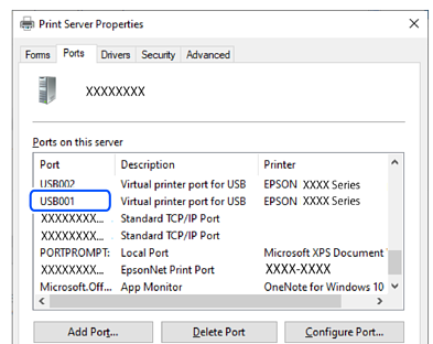 USB-anslutning: EPSON XXXX-serien