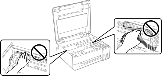 تنبه لكيلا تلمس العناصر المبينة في الرسم التوضيحي التالي عند إزالة أجسام غريبة؛ وإلا، فقد تتلف الطابعة.