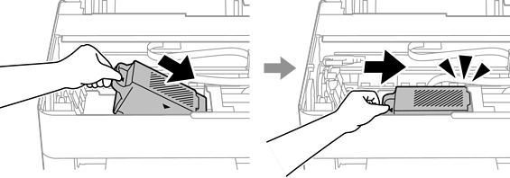 Inserte totalmente la nueva caja de mantenimiento en la impresora. Asegúrese de que introduce la caja en la dirección correcta.