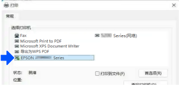 选择名称不以“(网络)”结尾或打印机名称不在括号内的打印机进行打印。