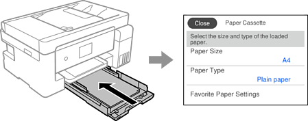 Si registreu la mida i tipus de paper en la pantalla que apareix en inserir el calaix de paper, la impressora us informarà quan la informació registrada i la configuració d'impressió siguin diferents. Això evita que malgasteu paper i tinta en assegurar-vos que no esteu imprimint en una mida de paper o color incorrectes pel fet d'utilitzar configuracions que no coincideixen amb el tipus de paper.