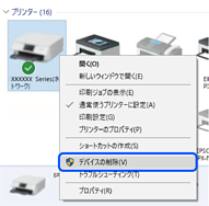 USBケーブルを取り外します。コンピューターに表示されているプリンターのアイコンを右クリックして、[デバイスの削除]を選択します。その後、USBケーブルを接続してください。