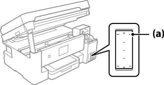 即使未将墨水补充至墨仓的上线,也可以继续使用本产品。但是,为使本产品以更佳状态运行,请将墨仓的墨水补充至上线,然后立即重置墨量。