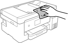 如果本产品的外壳上有污物或灰尘,请关闭本产品电源,然后使用干净的软湿布擦拭外壳。如果无法去除污物,请尝试通过使用中性清洁剂弄湿的干净的软湿布进行清洁。