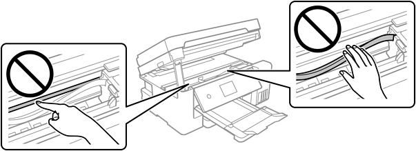 请勿触摸本产品内部的白色扁平线缆、半透明薄膜和墨管。否则可能会引起故障。