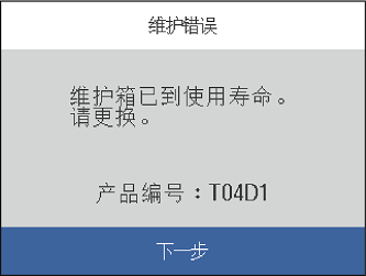 显示以下屏幕时,用户无法自行更换。请联系爱普生认证服务机构。