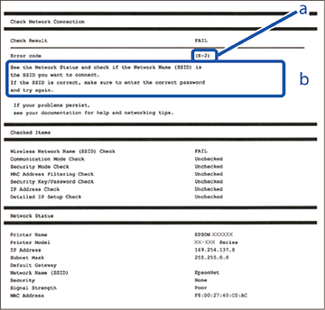 네트워크 연결 보고서의 메시지 및 오류 코드를 확인한 후 다음 해결 방법을 따르십시오.