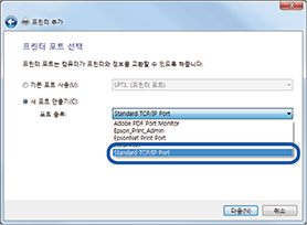 새 포트 만들기를 선택하고, 포트 종류에서 Standard TCP/IP Port를 선택한 후 다음을 클릭합니다.