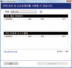 Windows Server 운영 체제를 사용할 경우 Epson Software Updater를 사용할 수 없습니다. Epson 웹사이트에서 최신 응용 프로그램을 다운로드합니다.