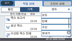 진행 중인 팩스 작업을 확인하거나 작업 기록을 확인할 수 있습니다.