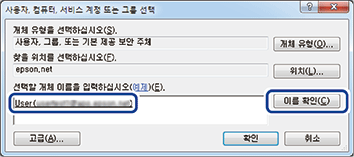 그룹 또는 사용자의 전체 이름을 모르는 경우 이름의 일부를 입력한 후 이름 확인을 클릭합니다. 이름의 일부가 일치하는 그룹 이름 또는 사용자 이름이 목록에 나타나며, 목록에서 전체 이름을 선택할 수 있습니다.