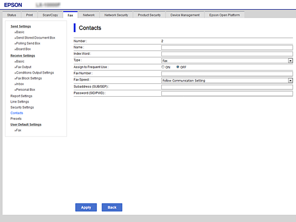 When setting as a frequently used address, it is displayed on the top screen of fax and scan, and you can specify the destination without displaying the contacts.