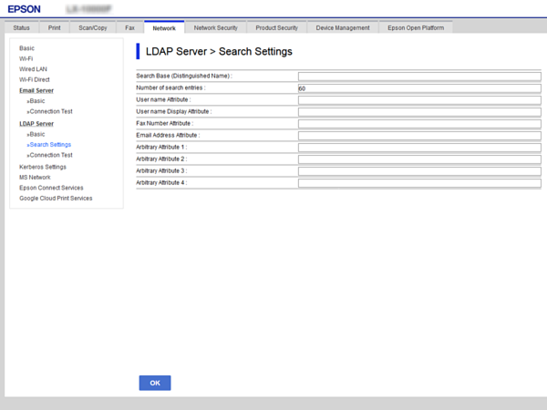 If you want to search an arbitrary domain, specify the domain name of the LDAP server. Enter between 0 and 128 characters in Unicode (UTF-8). If you do not search for arbitrary attribute, leave this blank. Example for the local server directory: dc=server,dc=local |