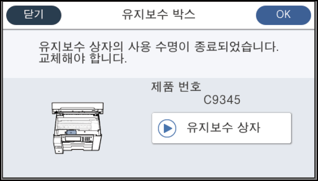 > 문제 해결 > 유지보수 상자 교체 시기 > 유지보수 상자 교체하기