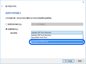 选择创建新端口并为端口类型选择 Standard TCP/IP Port (标准 TCP/IP 端口),然后单击下一步。
