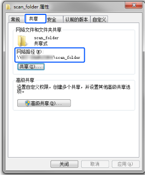 此时会显示共享文件夹的网络路径。注册本产品联系人时会使用此路径。请将此路径记录下来。