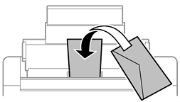Omotnice umetnite u središte stražnjeg punjenja papira tako da kraći okrenete prema naprijed, a preklopku prema dolje te zatim pomaknete rubne vodilice do rubova omotnica.
