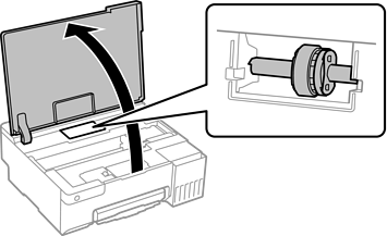 Apăsaţi clema din dreapta rolei de preluare, glisaţi-o în spate şi apoi trageţi-o în sus.