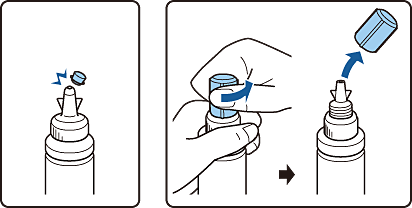 3 Ta bort locket på bläckflaskan, ta bort förseglingen på flaskan och skruva fast locket ordentligt.