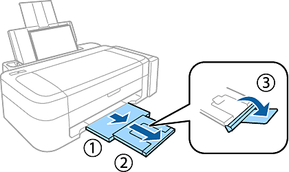 1 Убедитесь, что индикатор питания светится. Выдвиньте держатель бумаги и наклоните его назад.