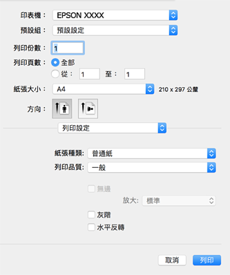 從[檔案]功能表選取[列印]或其他指令,存取列印對話方塊。