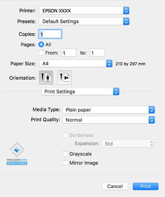 Uznirstošajā izvēlnē atlasiet Printera iestatījumi.