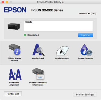Var palaist apkopes funkciju, piemēram, sprauslu pārbaudes un drukas galviņas tīrīšanas funkciju; palaižot programmu EPSON Status Monitor, var pārbaudīt printera statusu un skatīt informāciju par kļūdām.