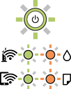 Indikatori vadības panelī norāda printera statusu.