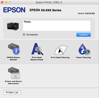 Saate käivitada hooldusfunktsioonid, nagu pihustite kontrollimine ja prindipea puhastamine, ning rakenduse EPSON Status Monitor käivitamisel saate kontrollida printeri olekut ja tõrketeavet.