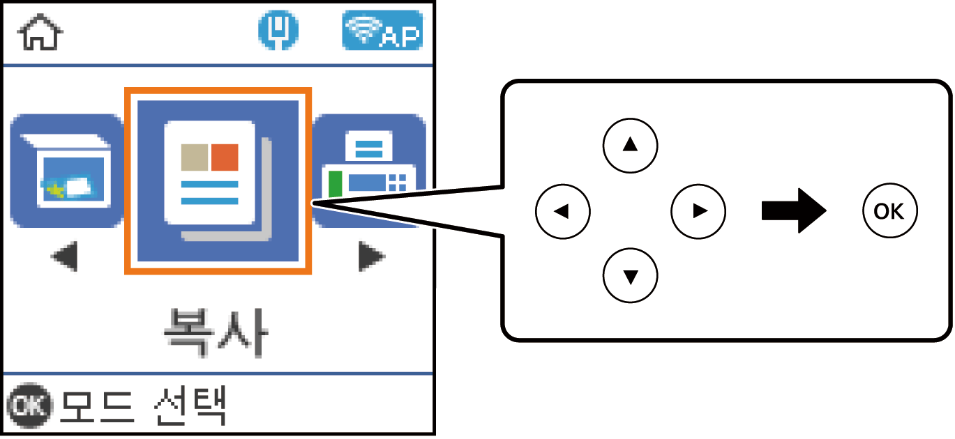 버튼을 사용하여 설정 메뉴를 지정한 다음,