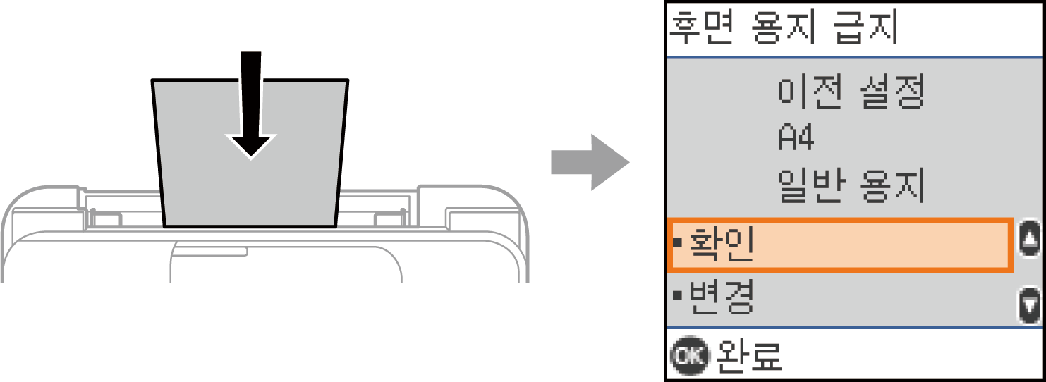 표시된 용지 크기 및 유형이 급지된 용지와 다른 경우, 용지 크기 및 용지 유형에 대한 설정을 변경한 다음 확인합니다.