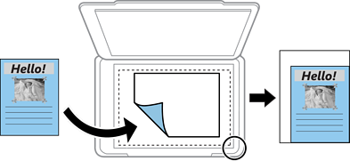 ตรวจสอบพื้นที่สแกนและขยายหรือลดขนาดต้นฉบับโดยอัตโนมัติให้เข้ากับขนาดกระดาษที่คุณเลือก หากมีระยะขอบสีขาวรอบ ๆ ต้นฉบับ ขอบสีขาวจากเครื่องหมายที่มุมของกระจกสำหรับตัวสแกนจะถูกตรวจจับเป็นพื้นที่สแกน แต่ระยะขอบกระดาษที่ด้านตรงข้ามอาจถูกตัดภาพ