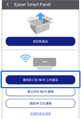 3  點擊 [連接至已在 Wi-Fi 上的產品]。
