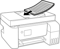 Разместите оригиналы на автоматическом податчике печатной стороной вверх и коротким краем вперед, а затем передвиньте боковую направляющую ADF к краю оригиналов.