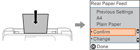 Ako se prikazana veličina i tip papira razlikuju od ubačenog papira, promenite podešavanja za veličinu i tip papira i zatim ih potvrdite.