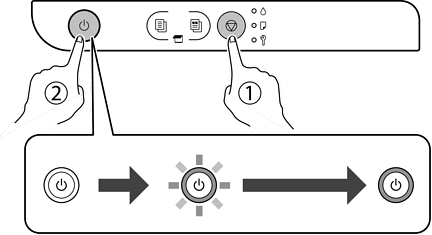버튼을 누른 상태로 프린터를 켠 후 전원 표시등이 깜박이면 버튼에서 손을 뗍니다.