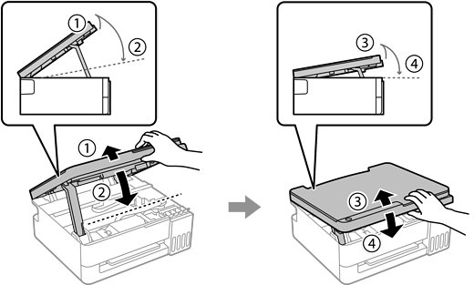 Por questões de segurança, a unidade de digitalização é fechada em dois passos.