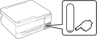 Để xác nhận lượng mực thực tế còn lại, hãy kiểm tra bằng mắt thường mức mực trong tất cả các hộp mực của máy in.