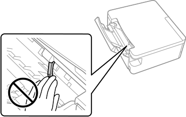 Prüfen Sie folgenden Bereich, nachdem Sie den Drucker langsam in die horizontale Position zurückgebracht haben. Wenn Sie Fremdkörper finden, entfernen Sie diese mit einer Pinzette oder einem ähnlichen Werkzeug. Prüfen Sie als Nächstes über die Lücke im hinteren Papiereinzug, dass alle Fremdkörper entfernt wurden.