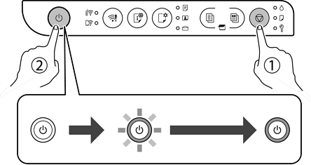 버튼을 누른 상태로 프린터를 켠 후 전원 표시등이 깜박이면 버튼에서 손을 뗍니다.
