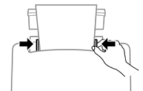 Загружайте бумагу коротким краем вперед. Однако если длинный край указан в качестве ширины размера, определенного пользователем, то вперед должен быть направлен длинный край.