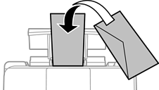 Chargez les enveloppes au centre du support du papier dans le sens de la longueur et rabat orienté vers le bas, puis faites glisser les guides latéraux contre le bord des enveloppes.