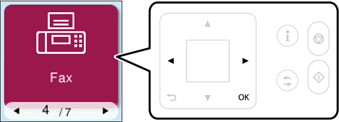 プリンターの操作パネルファクスで[ファクス]を選択します。