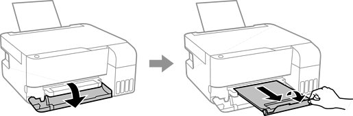 Åbn dækslet til udbakken, og træk derefter udbakken ud.