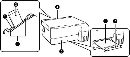 Contient le papier éjecté. Sortez-le manuellement et poussez-le pour le ranger. |