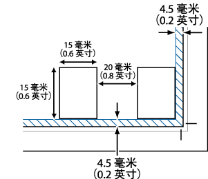 将照片放在文稿台上。将照片放置在距文稿台水平边缘和垂直边缘 4.5 毫米(0.2 英寸)处,并确保每张照片彼此间隔至少 20 毫米(0.8 英寸)。