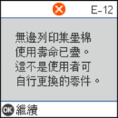 顯示下列畫面時,使用者不可更換該部分。請聯絡 Epson 支援服務。