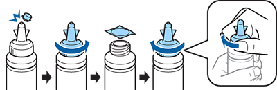 3 หักด้านบนของฝาปิด ถอดฝาปิดขวดหมึก แล้วดึงซีลออกจากขวด จากนั้นปิดฝาปิดให้แน่น