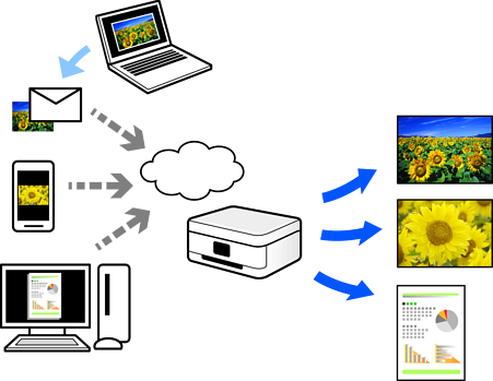 Quan s'envia un correu electrònic amb fitxers adjunts, com ara documents o imatges, a una adreça de correu electrònic assignada a la impressora, podeu imprimir el correu electrònic i els fitxers adjunts des de llocs remots, com ara la impressora de la vostra llar o oficina.