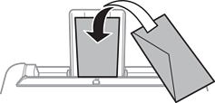 Læg først konvolutternes korte kant midt i papirstøtten med klappen nedad.